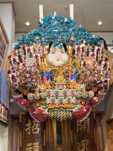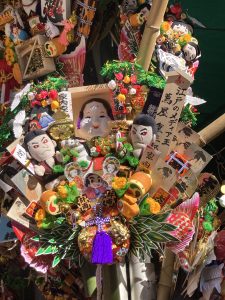 いつも目立ってるお店の熊手が今年はおとなしめ。