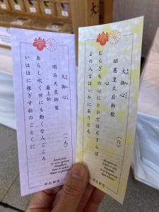 今年もありがたいお言葉を頂きます↓(明治神宮のおみくじは大吉などではなく、言葉が記してあります)